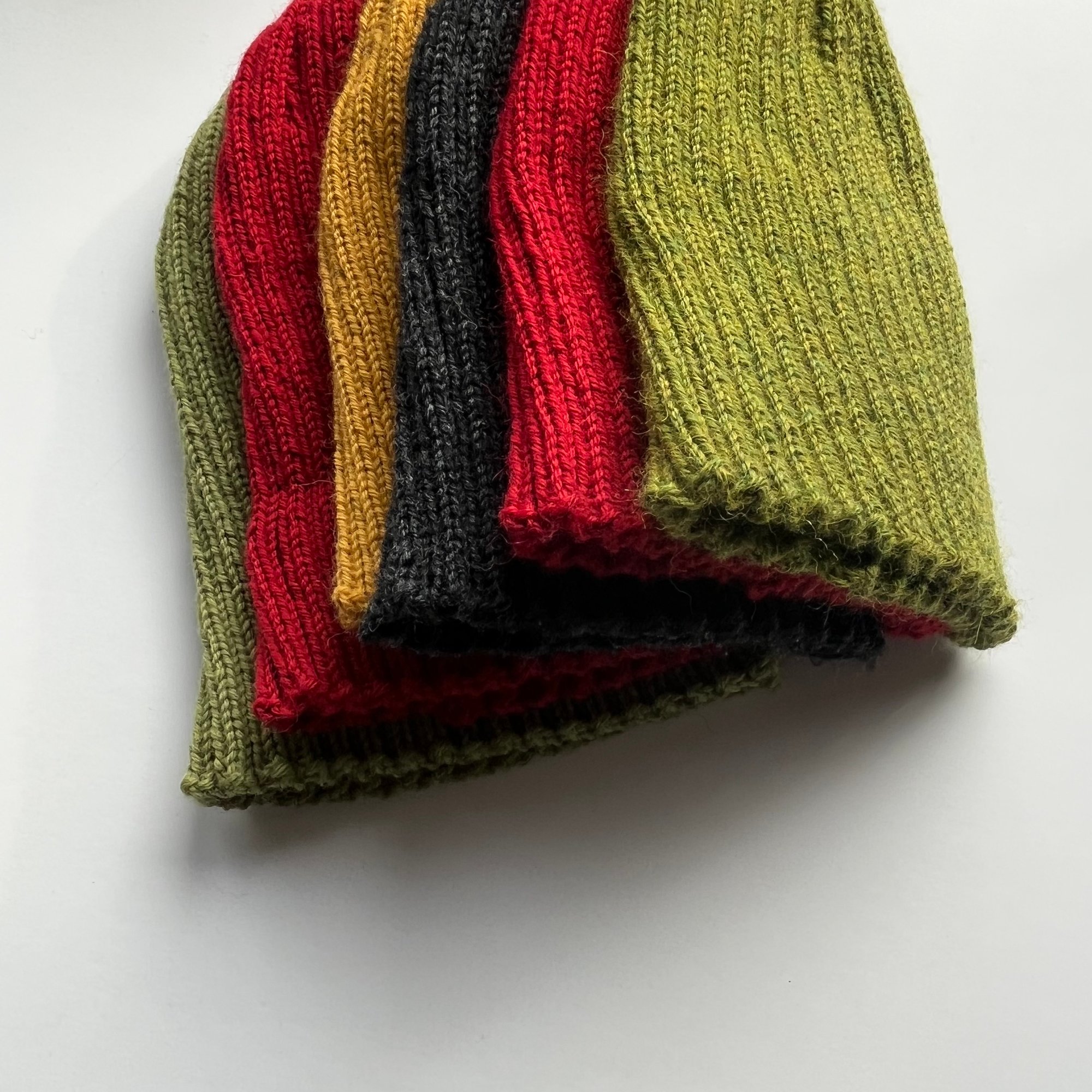 Pure wool or wool and alpaca hand knitted in the Highlands of Scotland. Hand wash at 30 degrees.